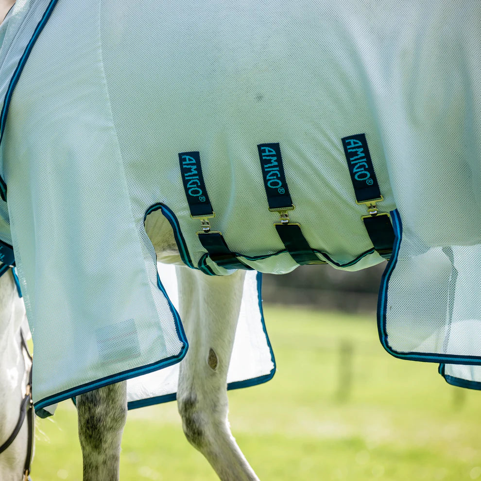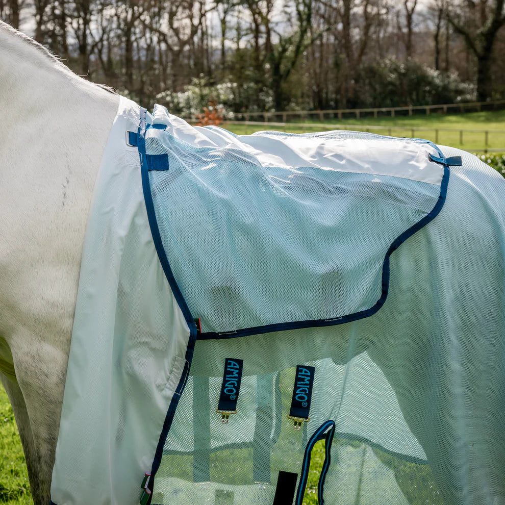 Cut from a strong, lightweight mesh Polyester, this fly sheet offers 65% UV protection. Featuring a supersized tail flap with a silky lining. The extra-wide belly flap gives exceptional belly coverage underneath three straight surcingles, with Velcro to secure the overlap.