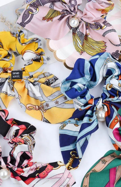 These gorgeous hand made scrunchies are perfect to add style to your bun or pony tail and match with any BARE or casual outfit! Using a high quality, super soft silk with the added details of flowing tails and large pearl, they feel as good as they look.