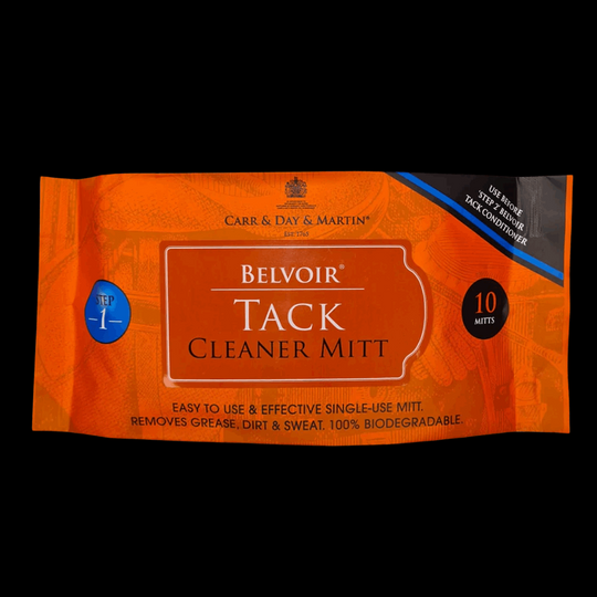 Belvoir Tack Cleaner Mitts contain practical leather cleaning gloves for uncomplicated cleaning of tack. The use of gloves without water makes it possible to use them wherever you are and makes leather care much easier. Ideal for your ring bag on show day.