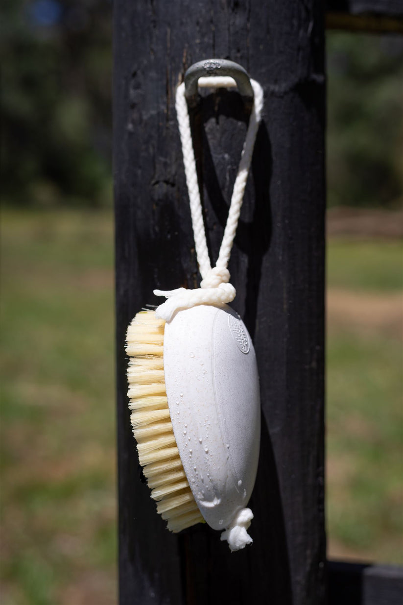 Give your horse a spa day with the Hairy Pony Wash Bay Brush! Its natural cactus fiber bristles are firmer than a sponge but gentle enough for a deep, refreshing cleanse.
