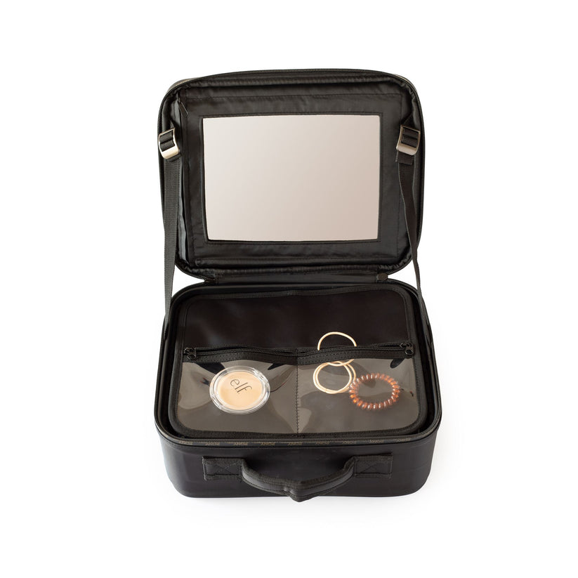 The designated storage case features a built-in mirror, an inner cover with clear pockets, and customisable partitions so you can easily arrange your items exactly how you like them.